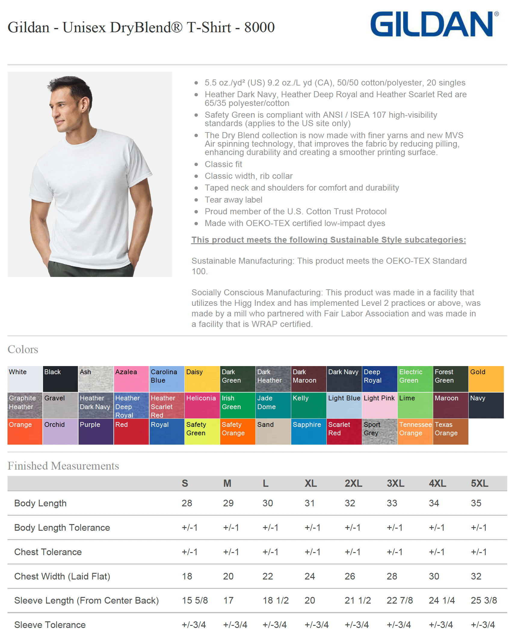Style #: G800 — Gildan® DryBlend® T-Shirt